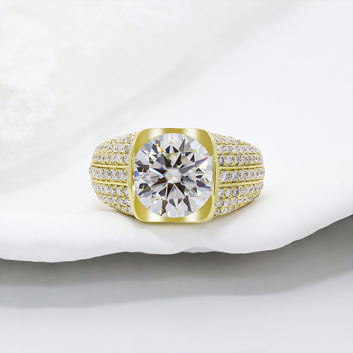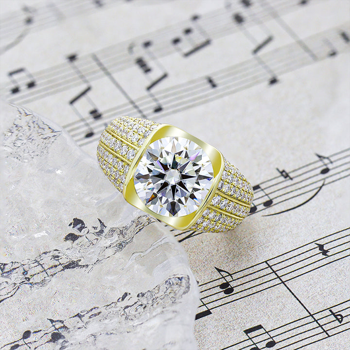 R00586-Paston Custom 11mm 5ct Round Moissanite Center Men's Ring
