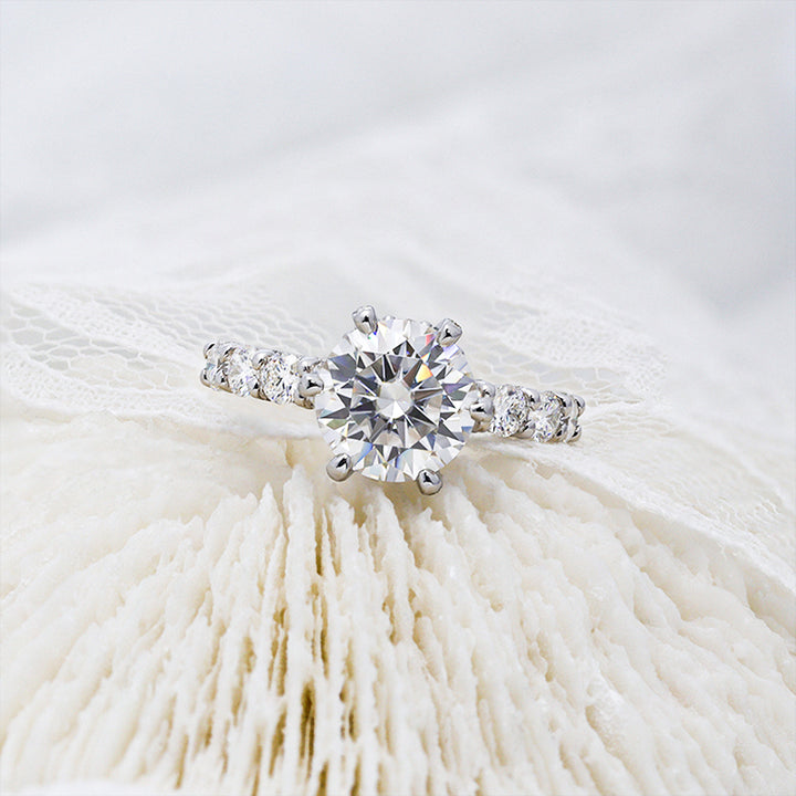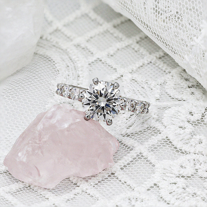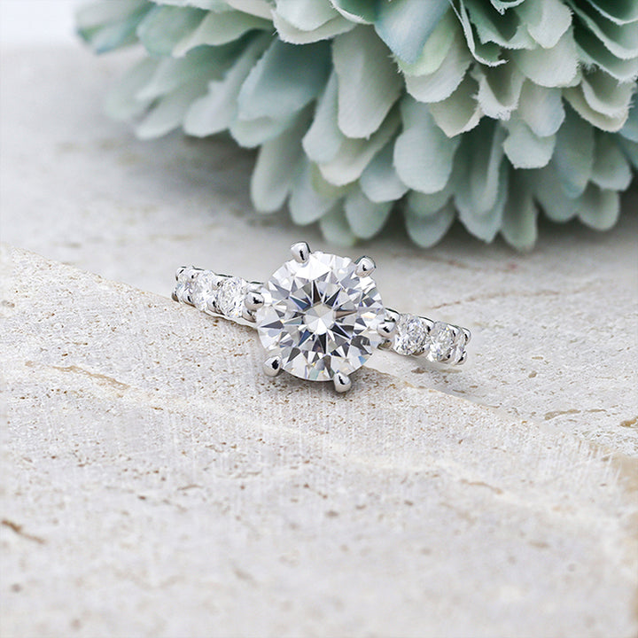 R00588-Paston Custom 9mm 3ct Round Brilliant Cut Moissanite Ring