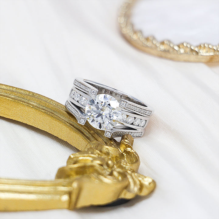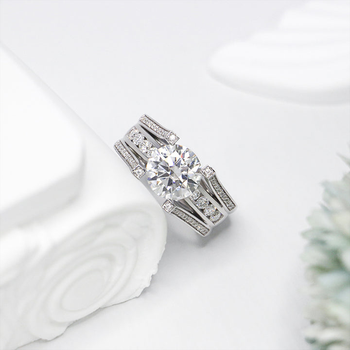 R00589-Paston Custom 9mm 3ct Round Brilliant Cut Moissanite Ring