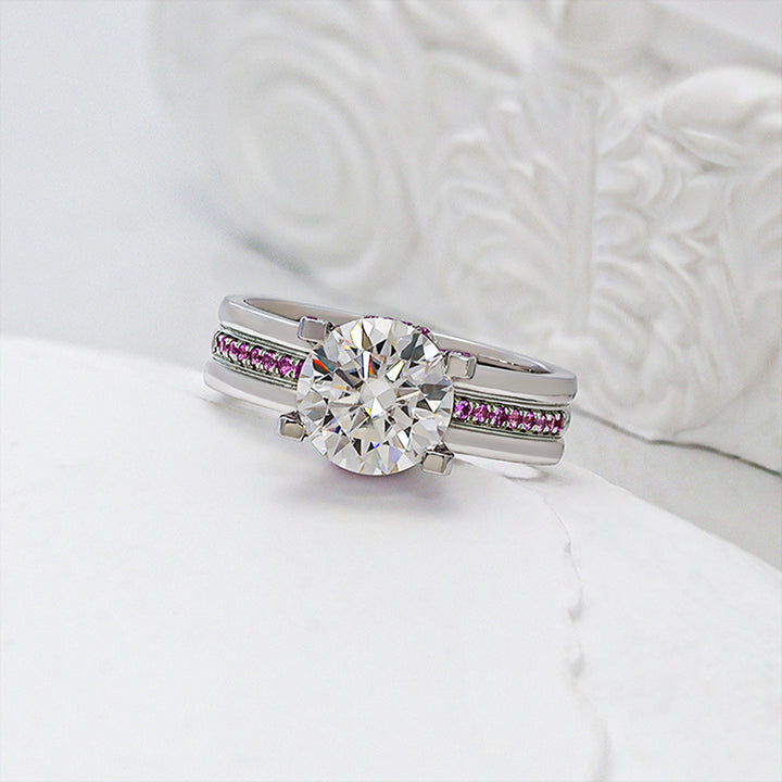 R00592-Paston Custom 9mm 3ct Round Moissanite Ring