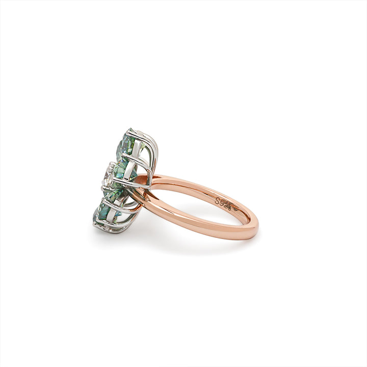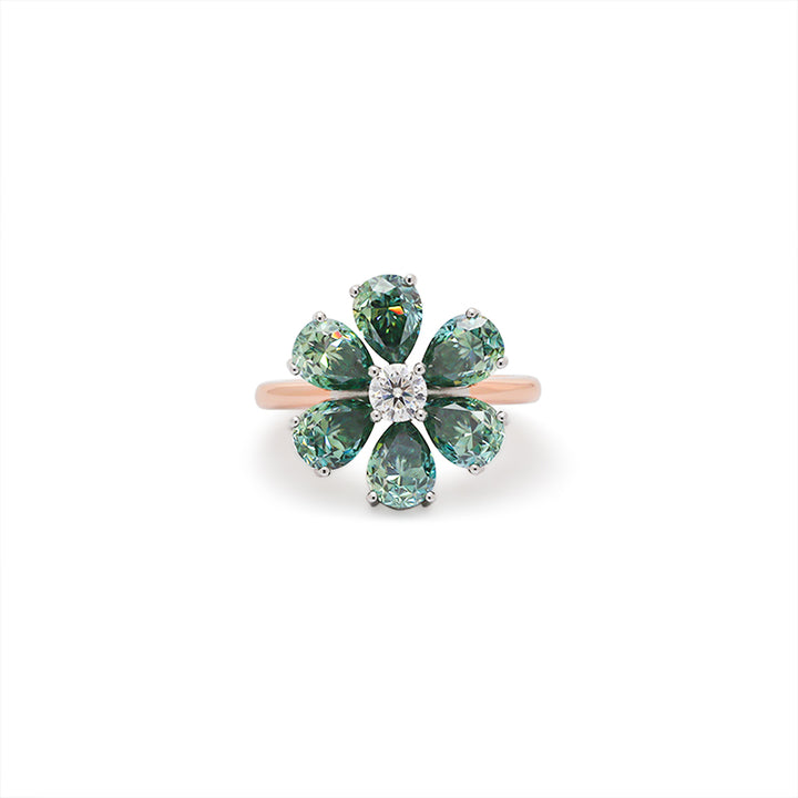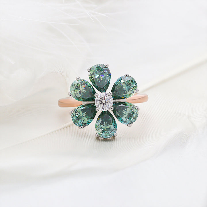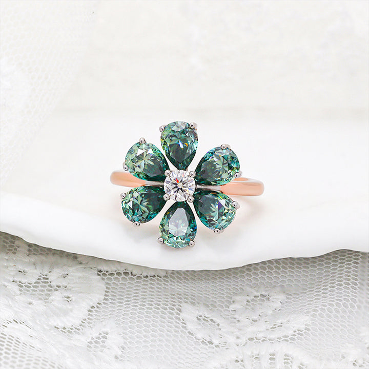 R00551-Paston Custom 5x7mm Green Pear Moissanite Flower Ring