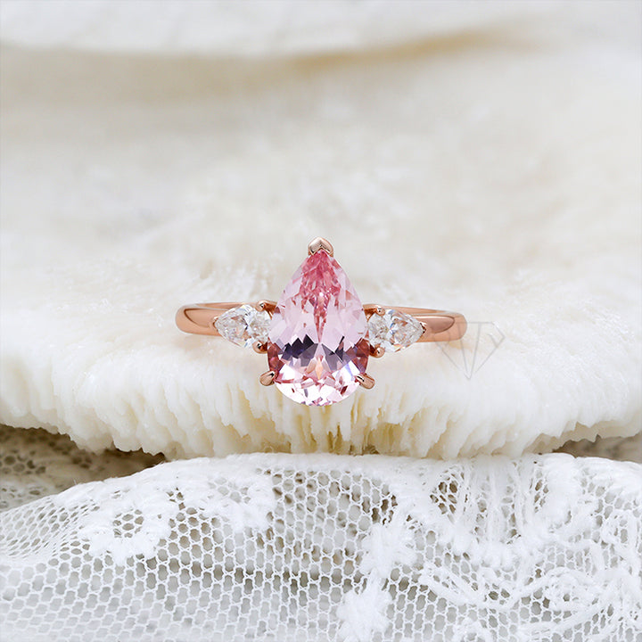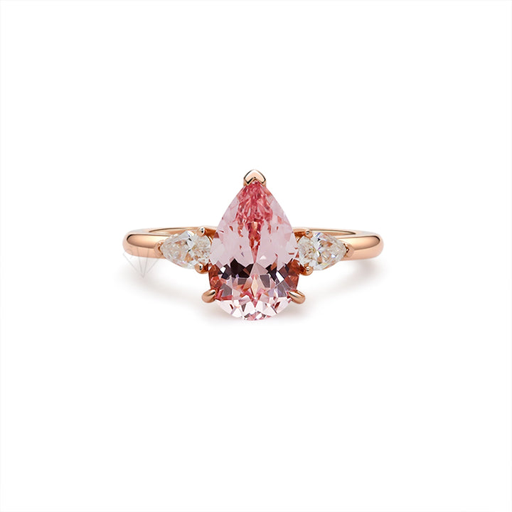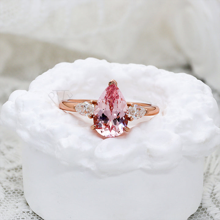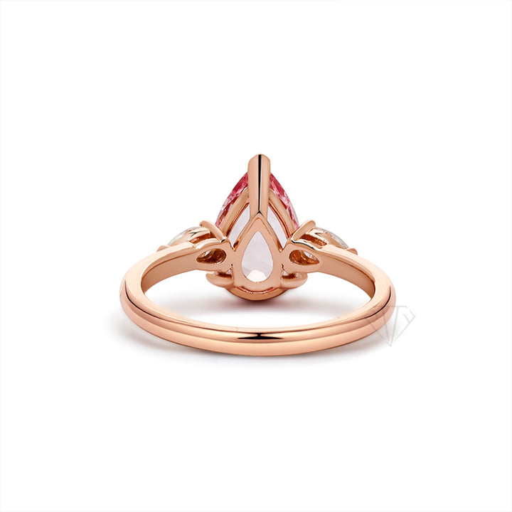 R00626-Paston Custom 8x12mm 4ct Pink Pear Lab Sapphire&4x6mm Moissanite Ring