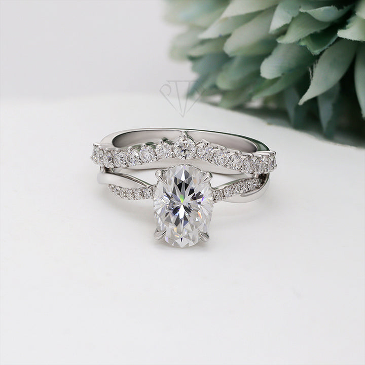 R00628-Paston Custom 7x10mm 2.5ct Oval Moissanite Ring Set